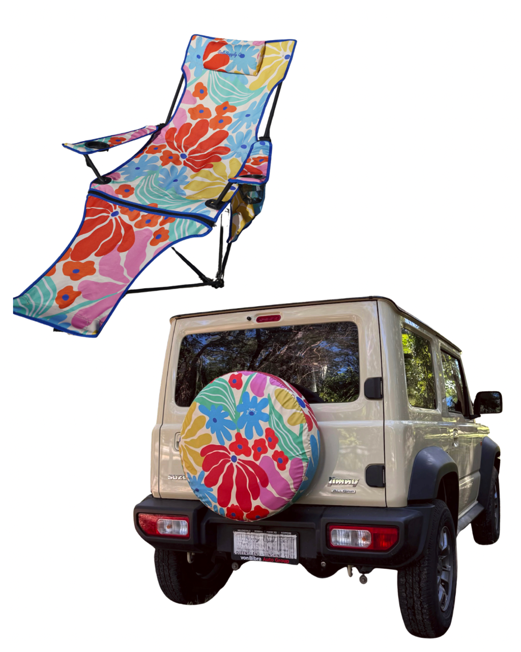 Bring the colour wherever you roam. Our Rainbow Bundle pairs a vibrant spare tyre cover with a matching reclining chair- designed to turn heads at camp and keep you comfy while you kick back.